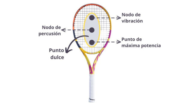 Aunque el concepto sea el mismo (zona donde la raqueta vibra menos y transfiere mejor la energía), el comportamiento en pista cambia mucho.